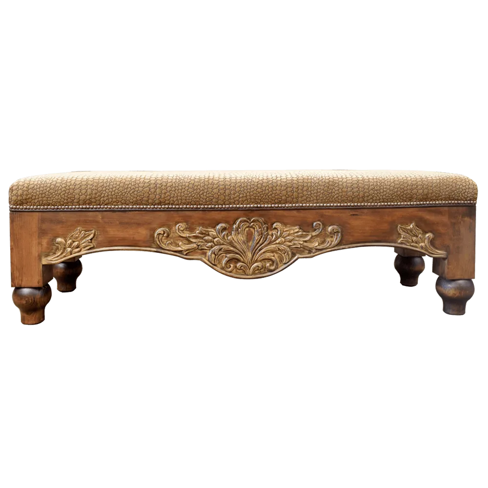 Descubre la sofisticación y el encanto atemporal con nuestra banca tradicional de madera con tallados hechos a mano de diseño clásico, ideal para añadir un toque de elegancia y estilo a cualquier espacio interior. Esta banca combina la belleza de los detalles ornamentales con una construcción robusta, ofreciendo tanto funcionalidad como un atractivo visual en tu hogar.