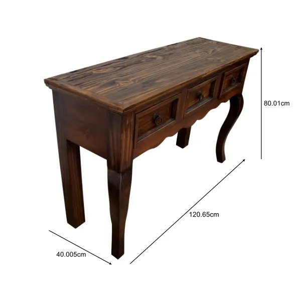 Transforma tu hogar con esta mesa consola de madera rústica, una pieza atemporal que combina elegancia clásica y funcionalidad práctica. Diseñada para aportar estilo y presencia a entradas, pasillos o salas, esta consola destaca por su estructura de madera sólida y acabados de alta calidad.