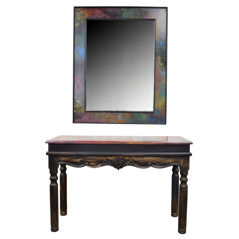 Exclusiva consola rústica estilo vintage con acabado brillante