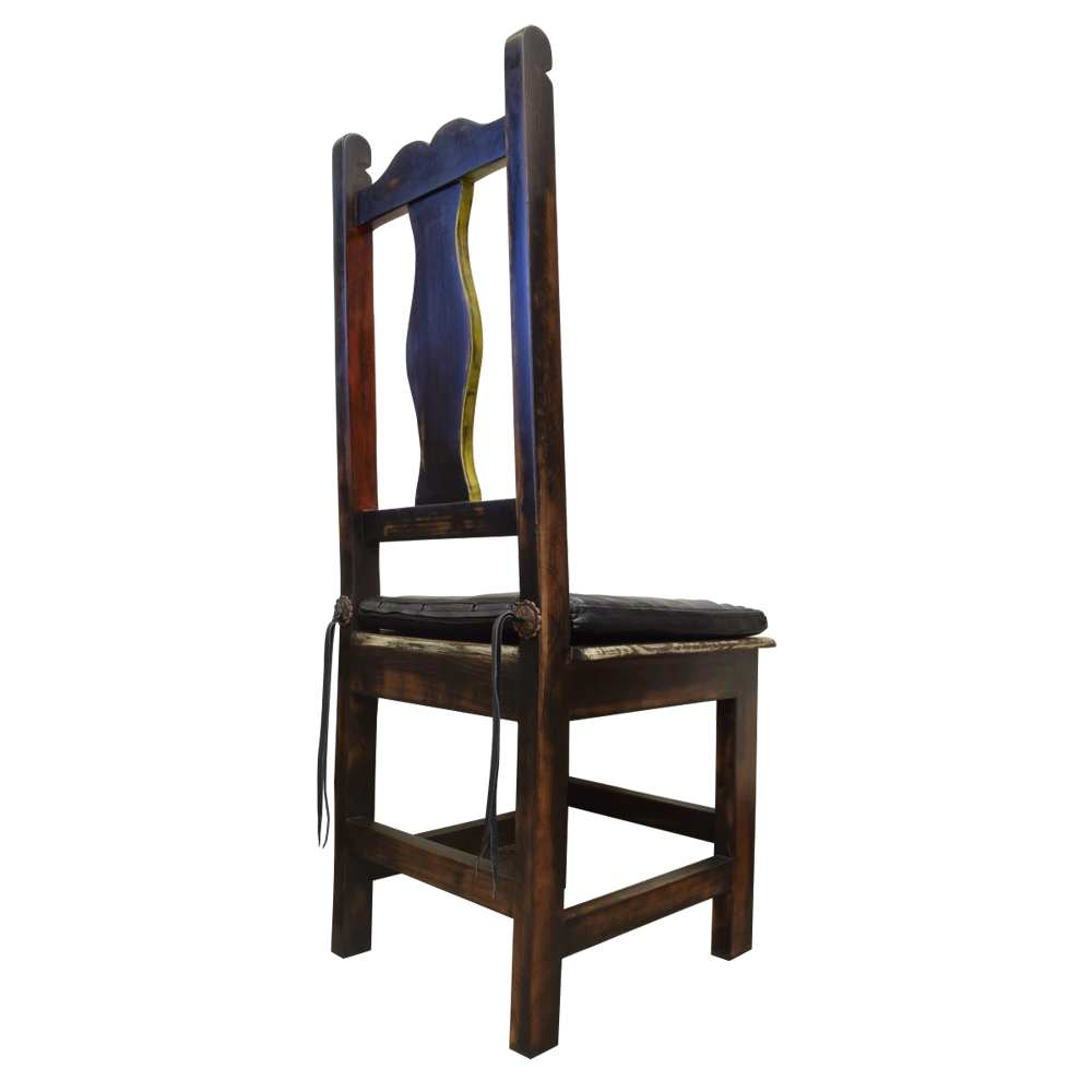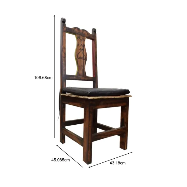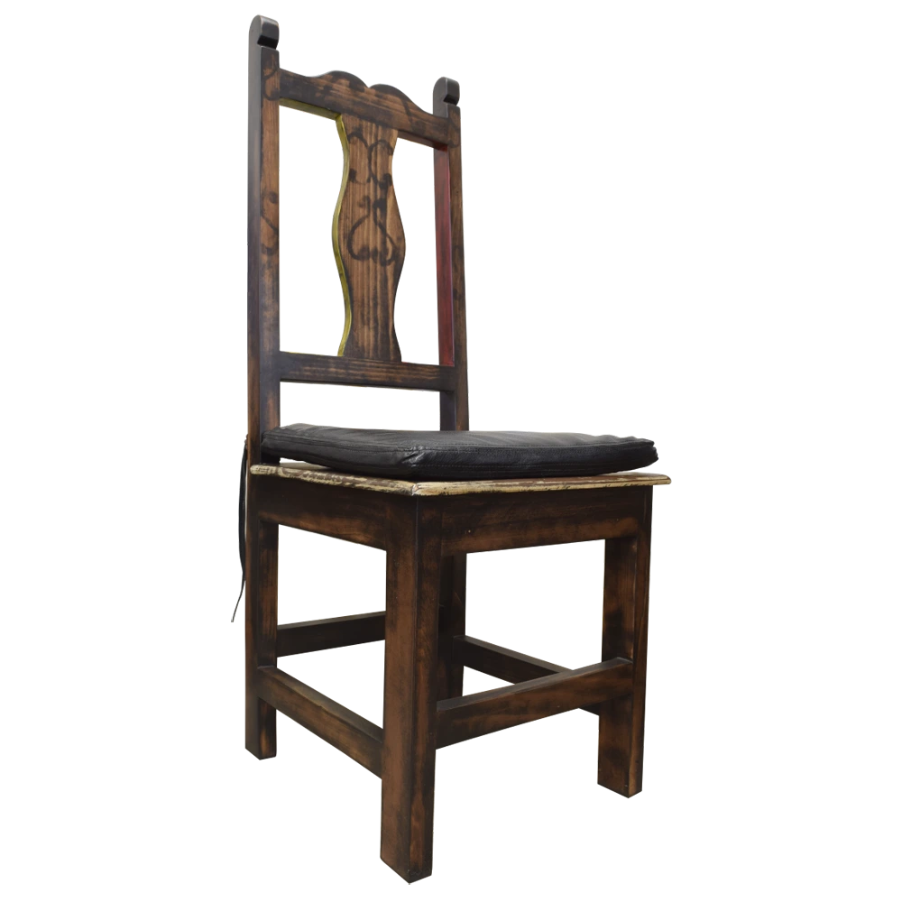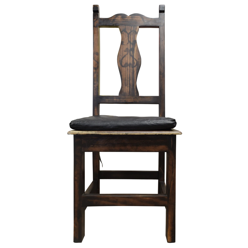 Descubre la sofisticación y el confort con nuestra elegante silla rústica de madera, que presenta un acabado oscuro y un diseño ornamental distintivo. Esta silla no solo aporta un toque de lujo a cualquier habitación, sino que también ofrece un apoyo ergonómico y estilizado para tu comodidad.